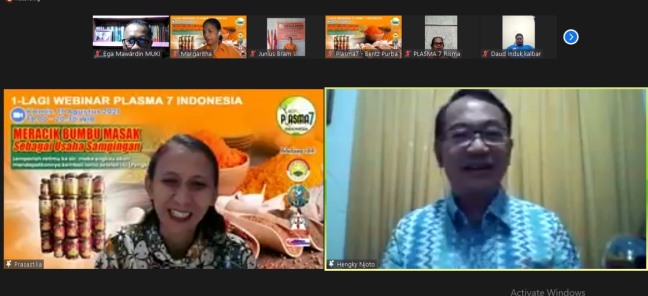 Kegiatan pemberdayaan dengan topik Meracik Bumbu Masak Sebagai Usaha Sampingan bertujuan untuk membantu keluarga-keluarga dalam merintis usaha melalui keterampilan meracik bumbu masak. Kegiatan ini terdiri dari dua sesi pembelajaran yaitu sessi 1: Meracik Bumbu Masak, Menghasilkan Sajian Lezat dan Penghasilan Tambahan dengan pembicara JUNIUS BRAM BUNTARAN, seorang praktisi kuliner dan dan juga sebagai Pendiri dan Ketua Dewan Pembina PEDALINDO (Perkumpulan Pedagang Jalanan Indonesia) dan juga Anggota Dewan Kehormatan RPS (Ruang Publik Sidoarjo) dan tinggal di Sidoarjo. Pada kegiatan sessi 2: 9 Cara Memulai Bisnis Bumbu Dapur dengan pembicara HENGKY NJOTO WIDJAJA, SE., MM, seorang Motivator Bisnis dan Consultan Management tinggal di Bandung. Kegiatan ini dipandu oleh moderator PRASASTILIA, S.Pd, selaku Sekretaris Tim Fasilitator Webinar Plasma7 Indonesia dan dihadiri lebih dari 300 orang peserta pelatihan dari berbagai kota di Indonesia.