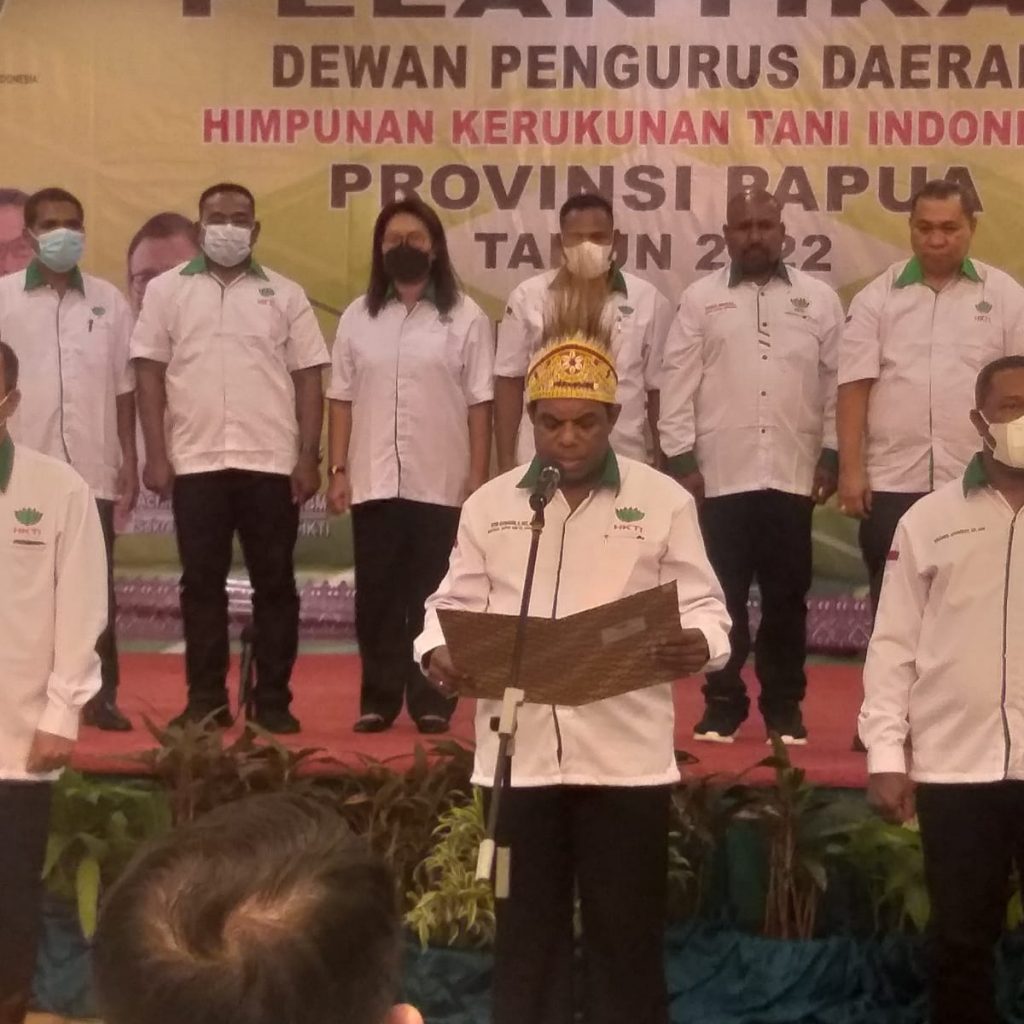Sementara Piter Gusbager pertama mengucapkan rasa terimakasihnya kepada ketua Umum HKTI serta jajarannya yang sudah berkenan melantik pengurus DPD HKTI Papua.