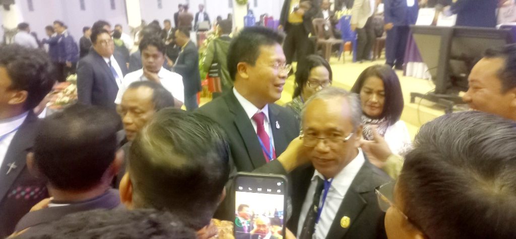 Sesaat setelah kartu suara terakhir dibacakan, Ephorus Pdt. Dr. Robinson Butarbutar dan Pdt. Dr. Victor Tinambunan (Ephorus Terpilih) langsung bersalaman dihadapan awak media.