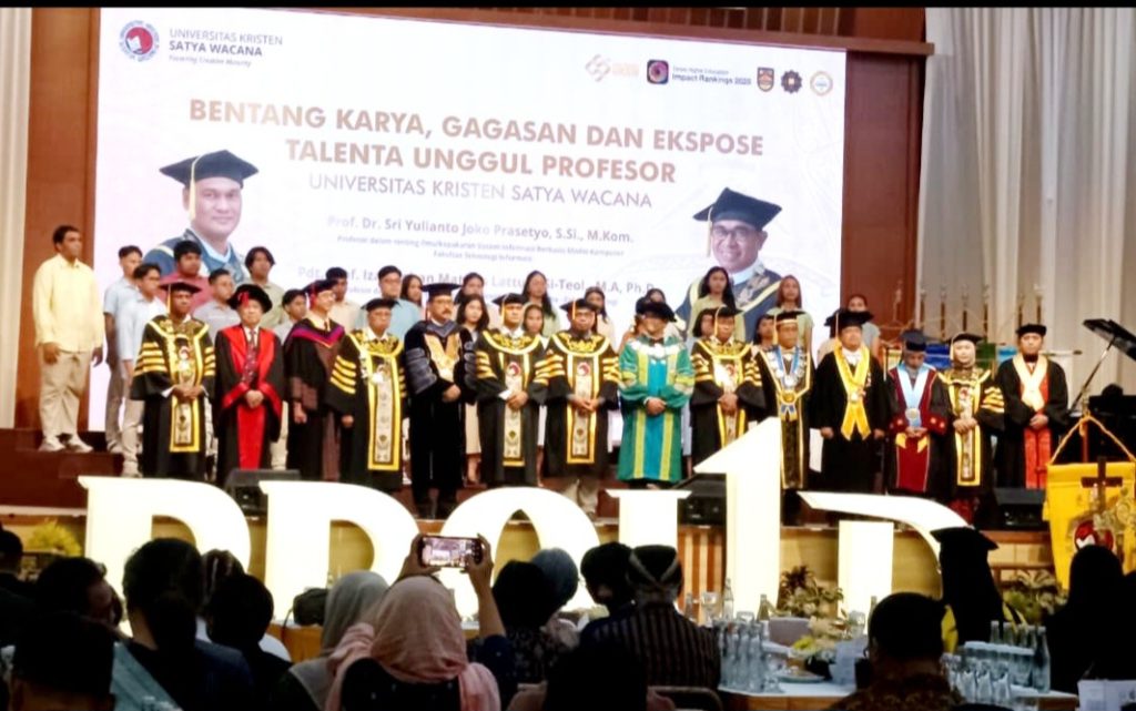 UKSW (Universitas Kristen Satya Wacana) kembali mengukuhkan 2 Guru Besar baru di lingkungan kampusnya, yakni Prof. Dr. Sri Yulianto Joko Prasetyo, SSI, M.Kom dan Pdt. Prof. Isak Yohan Matriks Lattu SSi Teol, MA, PhD bertempat di Bailarung UKSW Salatiga, Kamis (6/11). Pengukuhan ini dipimpin langsung Rektor UKSW Prof. Intyas Utami, SE, MSi, Ak dan dihadiri Gubernur Jawa Tengah serta undangan lainnya.