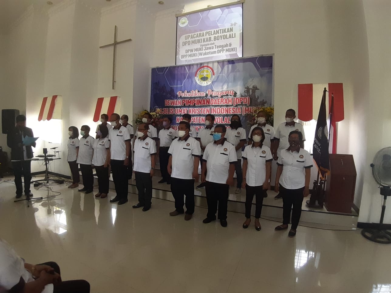 Acara Pelantikan tersebut langsung dipimpin oleh wakil ketua umum V Pdt. Philipus Setyanto., M.Th yang di dampingi oleh ketua DPW MUKI Propinsi Jawa Tengah Arif Wibowo., S.Sos., MM. Melantik DPD MUKI Kabupaten Boyolali yang di komandani oleh Dr. Sri Wahono, Dp. Tesol, M.Si.
