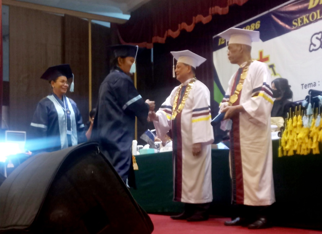 “Pesan saya kepada wisudawan bahwa menyerahkan diri kepada Tuhan secara total maka Tuhan akan memberi talenta, anugerah dan kasih Kristus dalam panggilan pelayanan kita.”