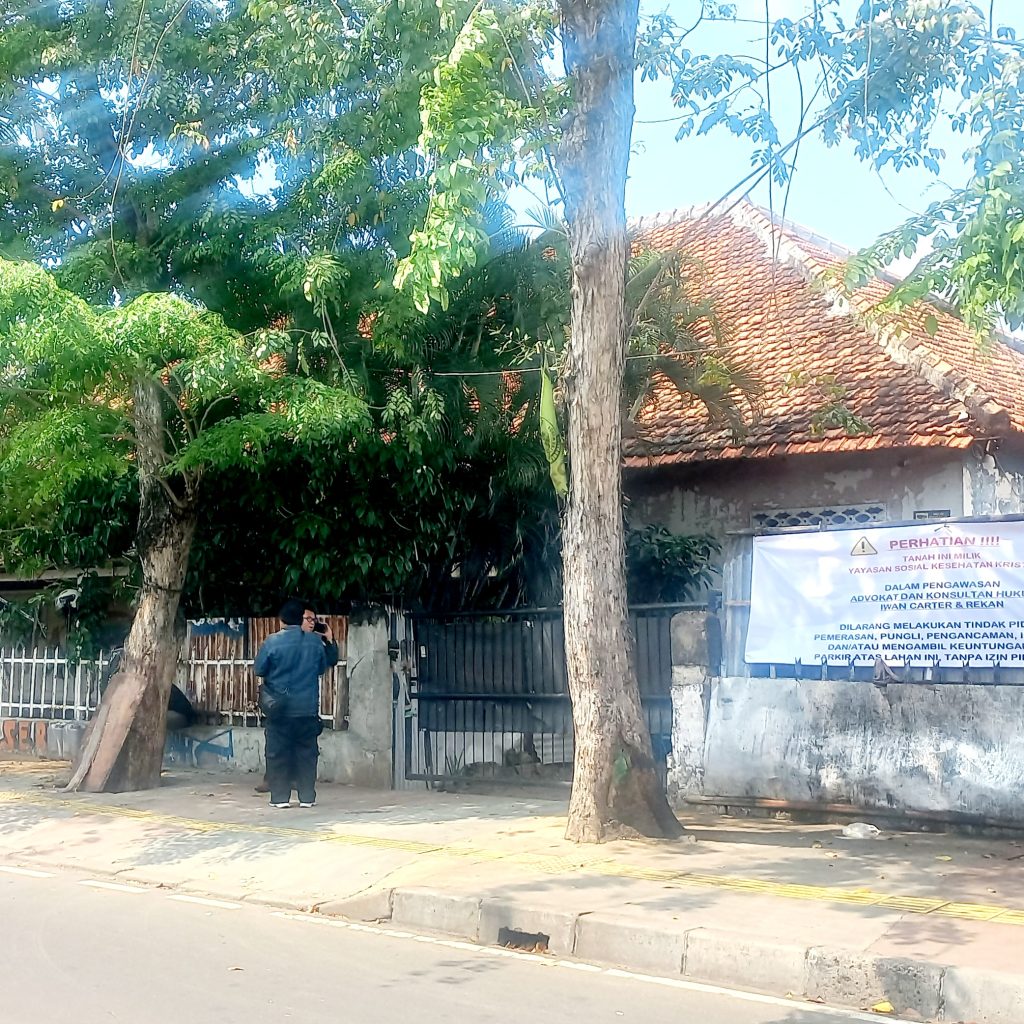 MajalahGajaru.com – Pihak Yayasan Sosial Kesehatan Kristen (Yaskrista) lewat kuasa hukumnya, Jumat (22/08) siang telah melakukan pengukuran dengan petugas BPN dan memasang spanduk peringatan di lahan Jalan Keramat Baru, Kecamatan Johar Baru Jakarta Pusat. Yayasan yang dinaungi Persekutuan Gereja-Gereja di Indonesia (PGI) bahkan membawa rombongan untuk tujuan mengosongkan lahan. Kuasa hukum Yaskrista Irwan Carter dan Rekan menyampaikan bahwa Yayasan sebagai pemilik lahan akan mengadakan pengukuran lahan dan meminta dikosongkan.
