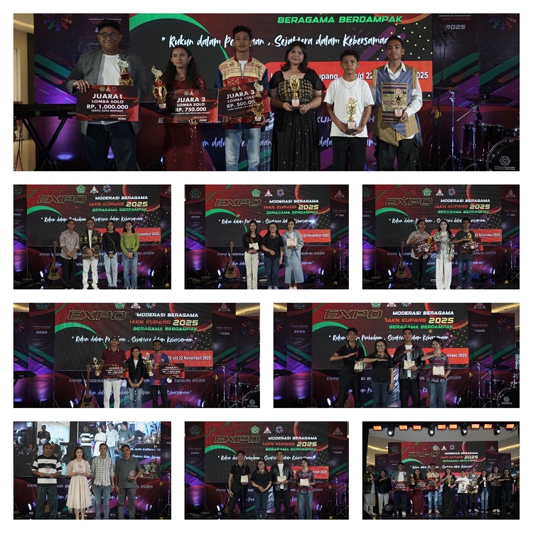 Majalahgaharu Kupang IAKN Kupang (Kemenag) Rangkaian Expo Moderasi Beragama 2025 yang digelar Institut Agama Kristen Negeri (IAKN) Kupang sejak 20 November 2025 resmi ditutup pada Sabtu (22/11/2025) di Lippo Plaza Kupang. Penutupan berlangsung meriah dengan berbagai kegiatan penghargaan bagi para pemenang lomba, doorprize bagi pengunjung, serta beasiswa UKT bagi mahasiswa berprestasi.
